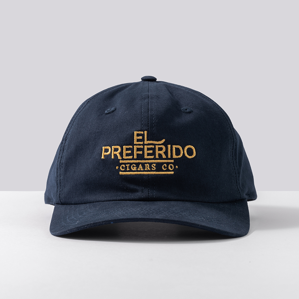 Bordado frontal: Logomarca El Preferido em dourado (bordado tatami)