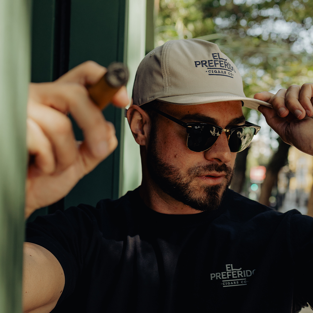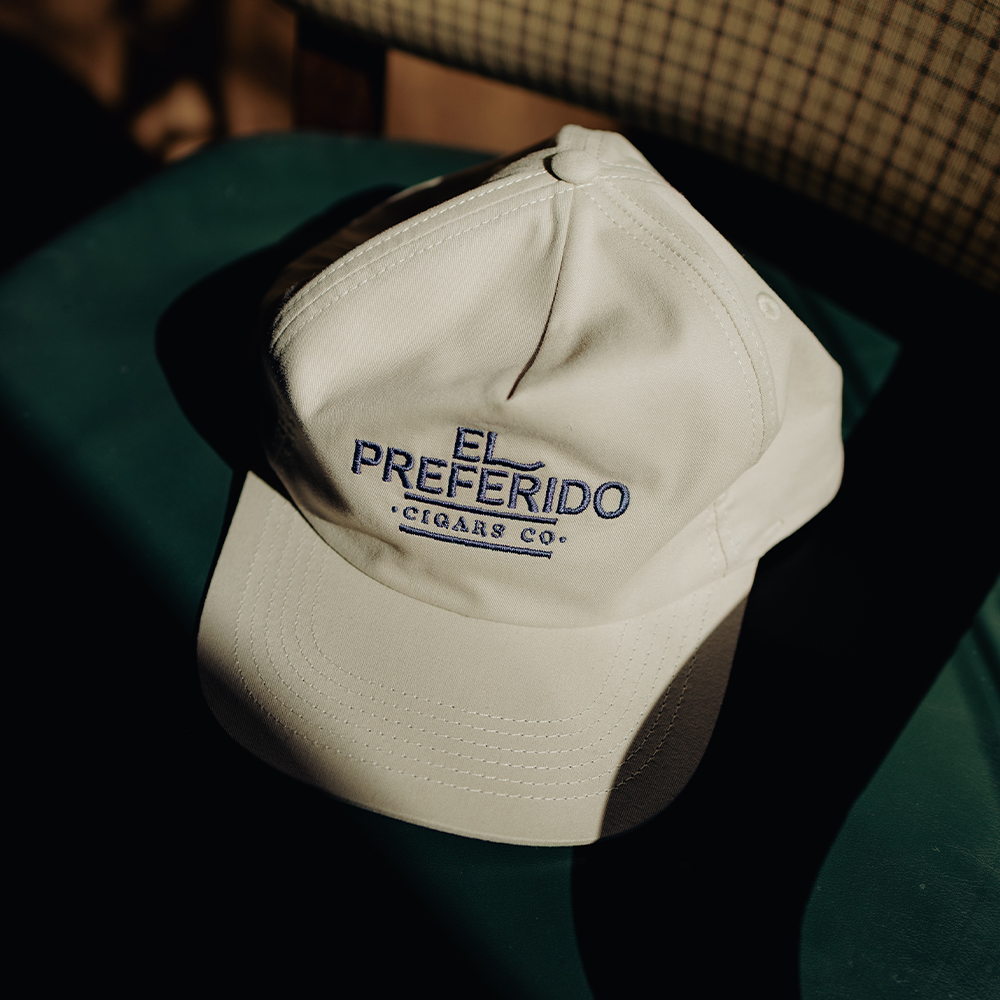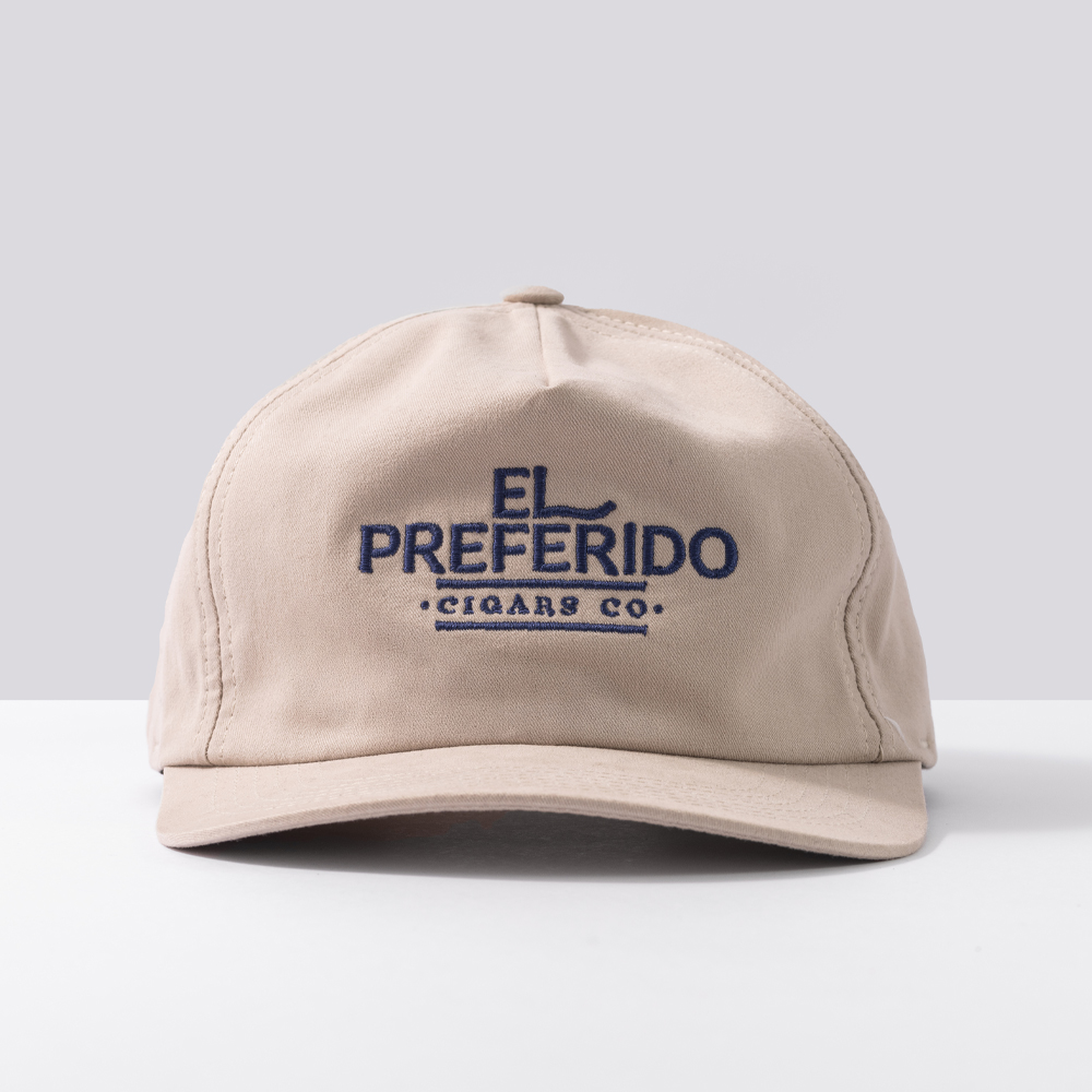 • Bordado frontal: Logomarca El Preferido em azul marinho (bordado tatami)